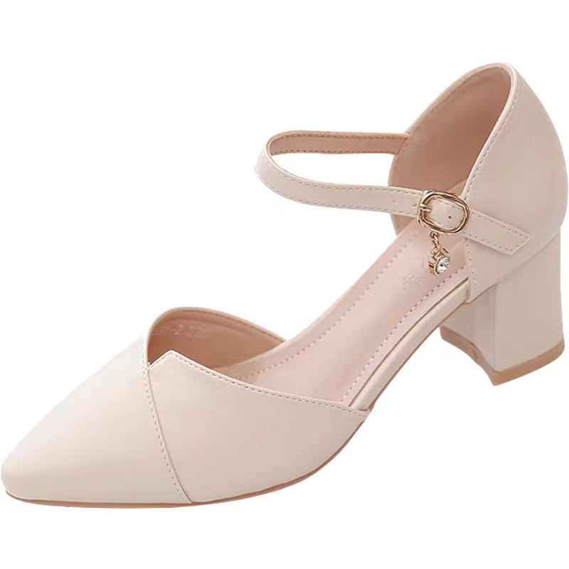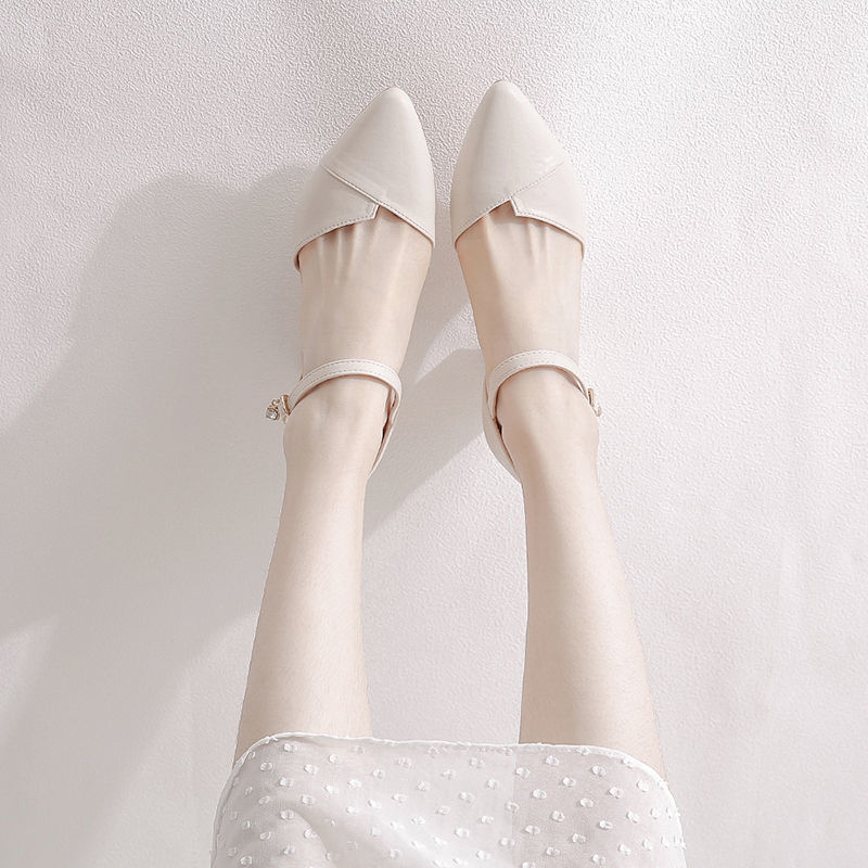 薏尔康包头高跟凉鞋女2025夏季新款仙女一字式扣带粗跟尖头单鞋