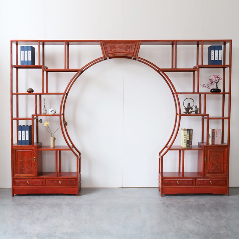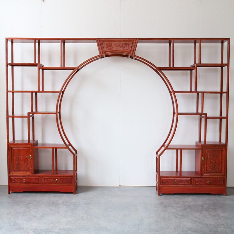 新中式实木客厅月洞门博古架隔断拱门镂空月亮门红木彷古弧形圆门