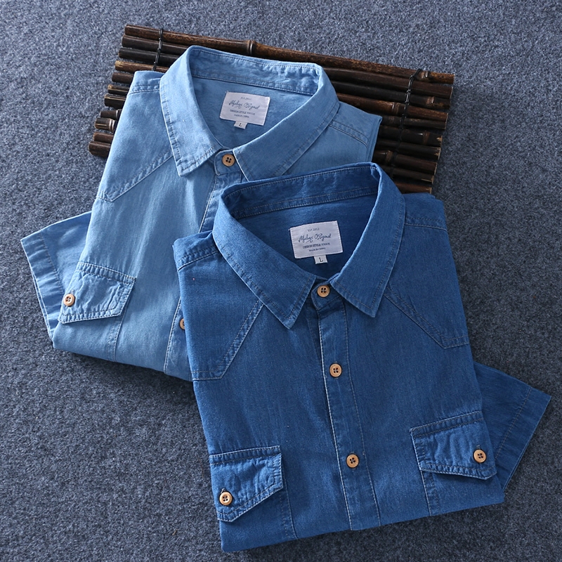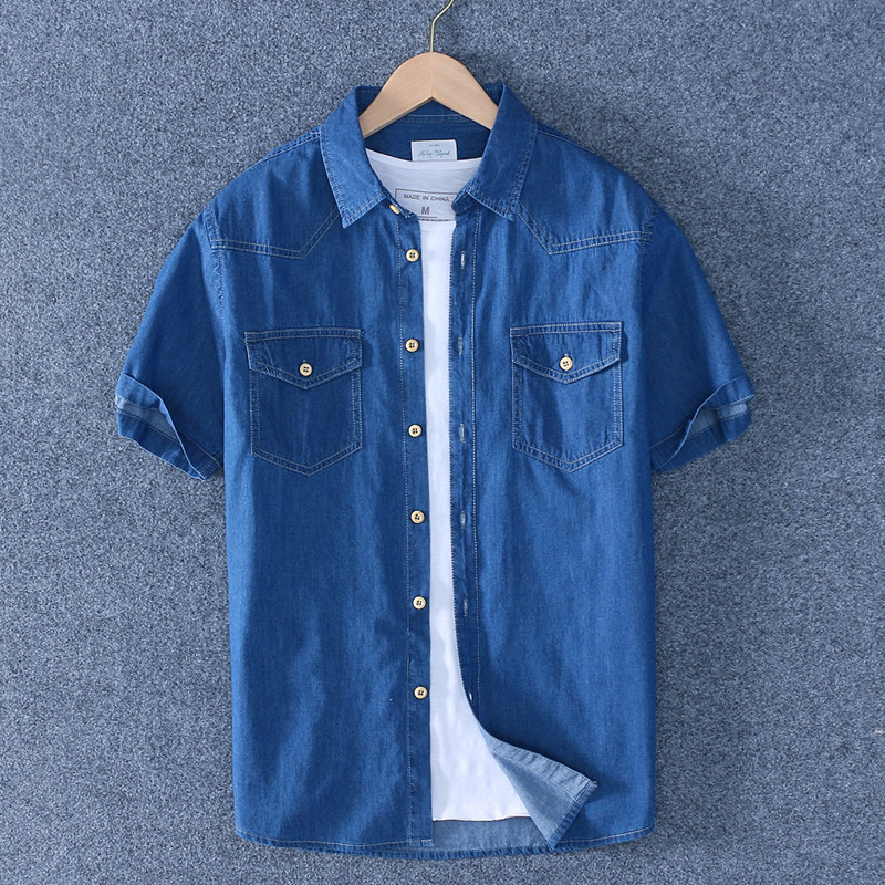 莎芭绮青年半袖薄款大码牛仔衬衫
