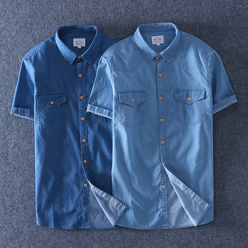 莎芭绮牛仔衬衫男夏季短袖衬衣青年半袖薄款上衣男士牛仔宽松大码