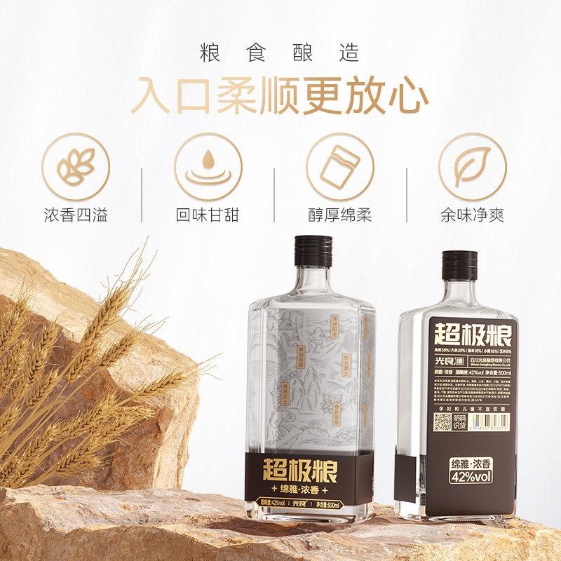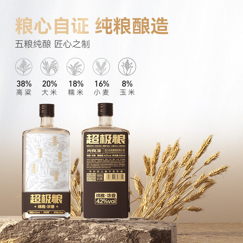 【官方正品】光良超极粮 42度浓香型白酒纯粮高粱酒整箱500ml