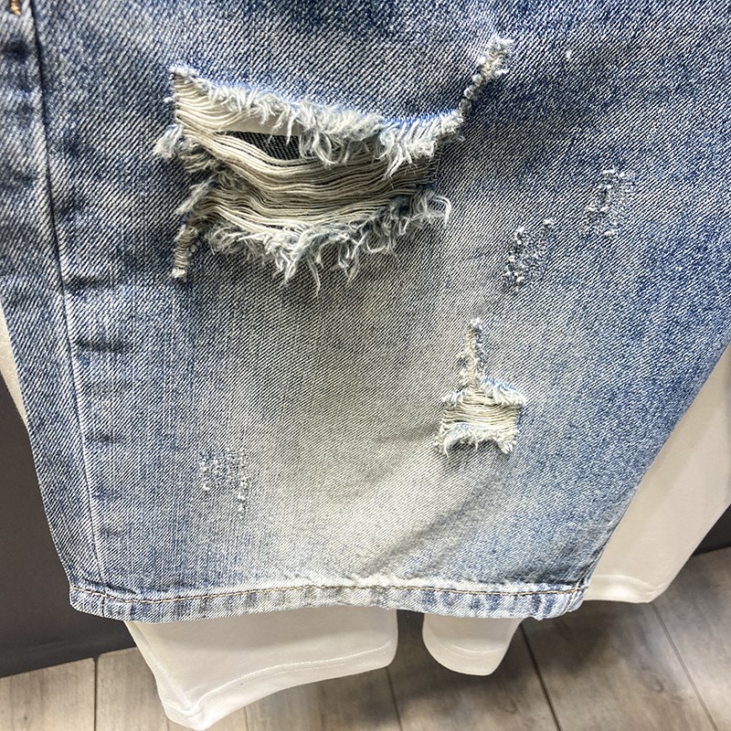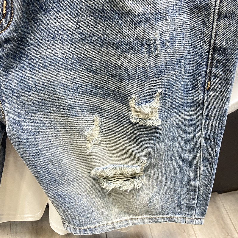 复古破洞牛仔短裤男夏季薄款印花水洗潮流中裤做旧潮牌百搭五分裤