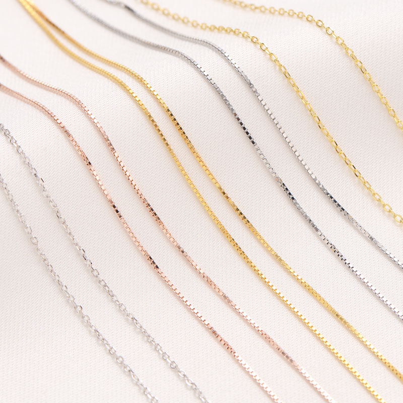 s925纯银镀金盒子链项链手工diy白金颈链O字带针穿珠可调节手链