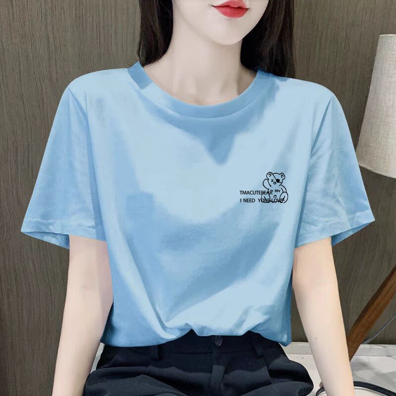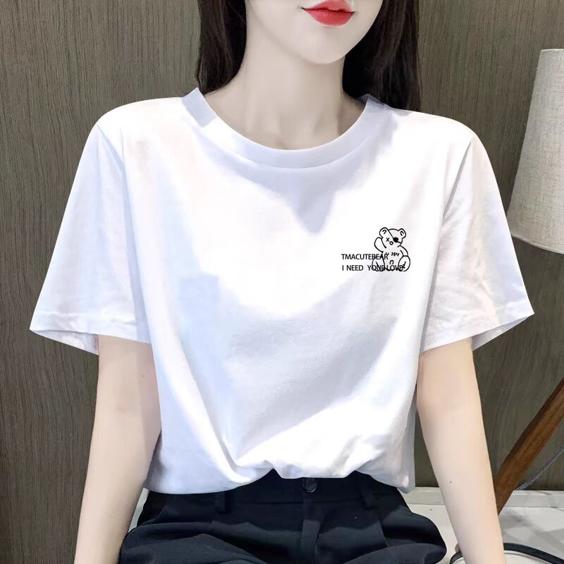 纯棉短袖T恤女士2025夏季新款爆款小众宽松大码休闲圆领体恤上衣