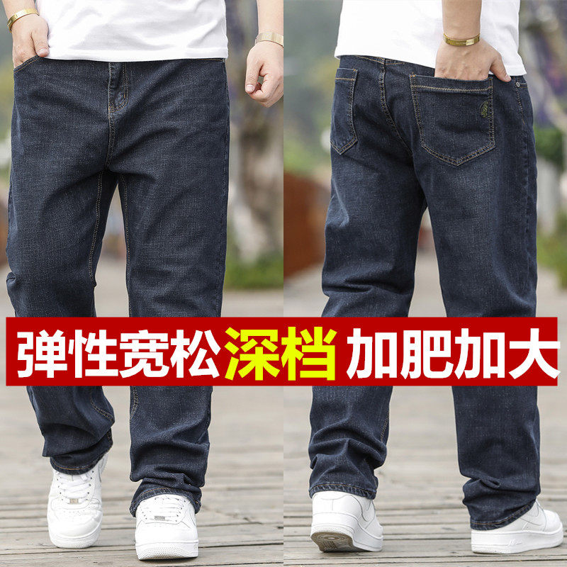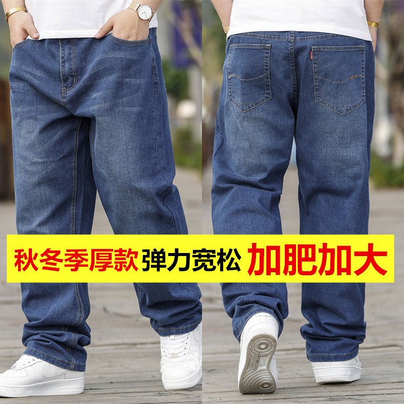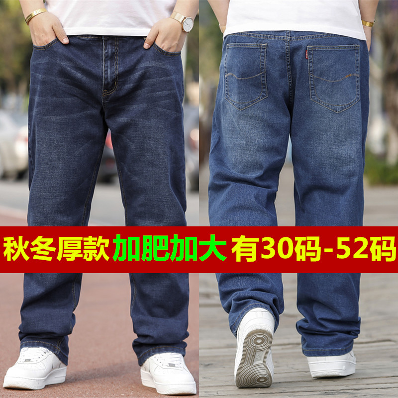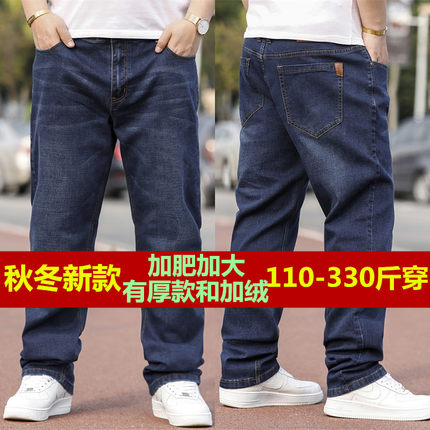 秋冬季胖子特大号牛仔裤男加绒加厚款加肥加大码弹力宽松肥佬长裤