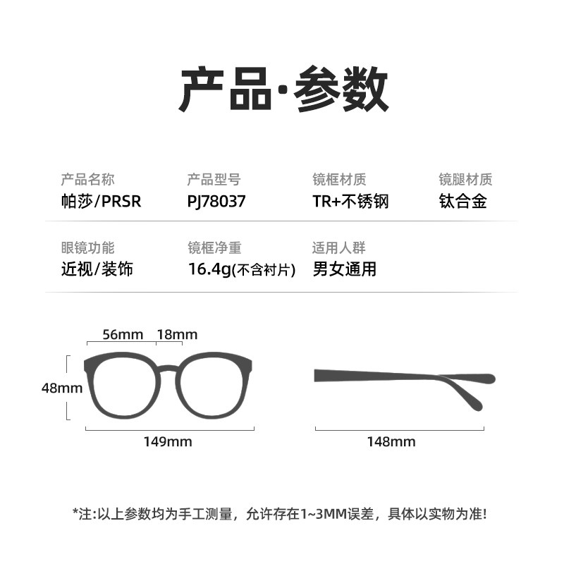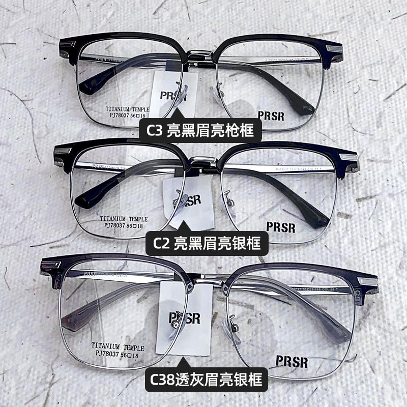帕莎近视眼镜框男士商务眉线框可配近视钛眉毛镜架女PJ78037