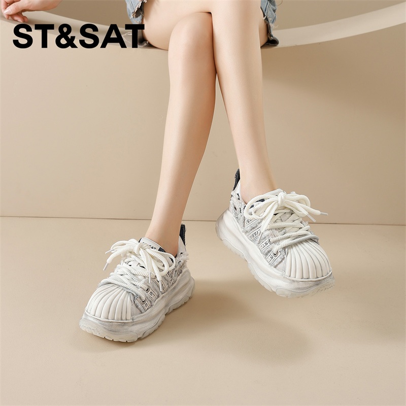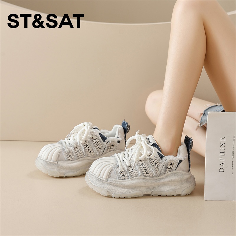 星期六小白鞋女2025秋季新款女鞋女款爆款鞋子厚底增高白鞋贝壳鞋
