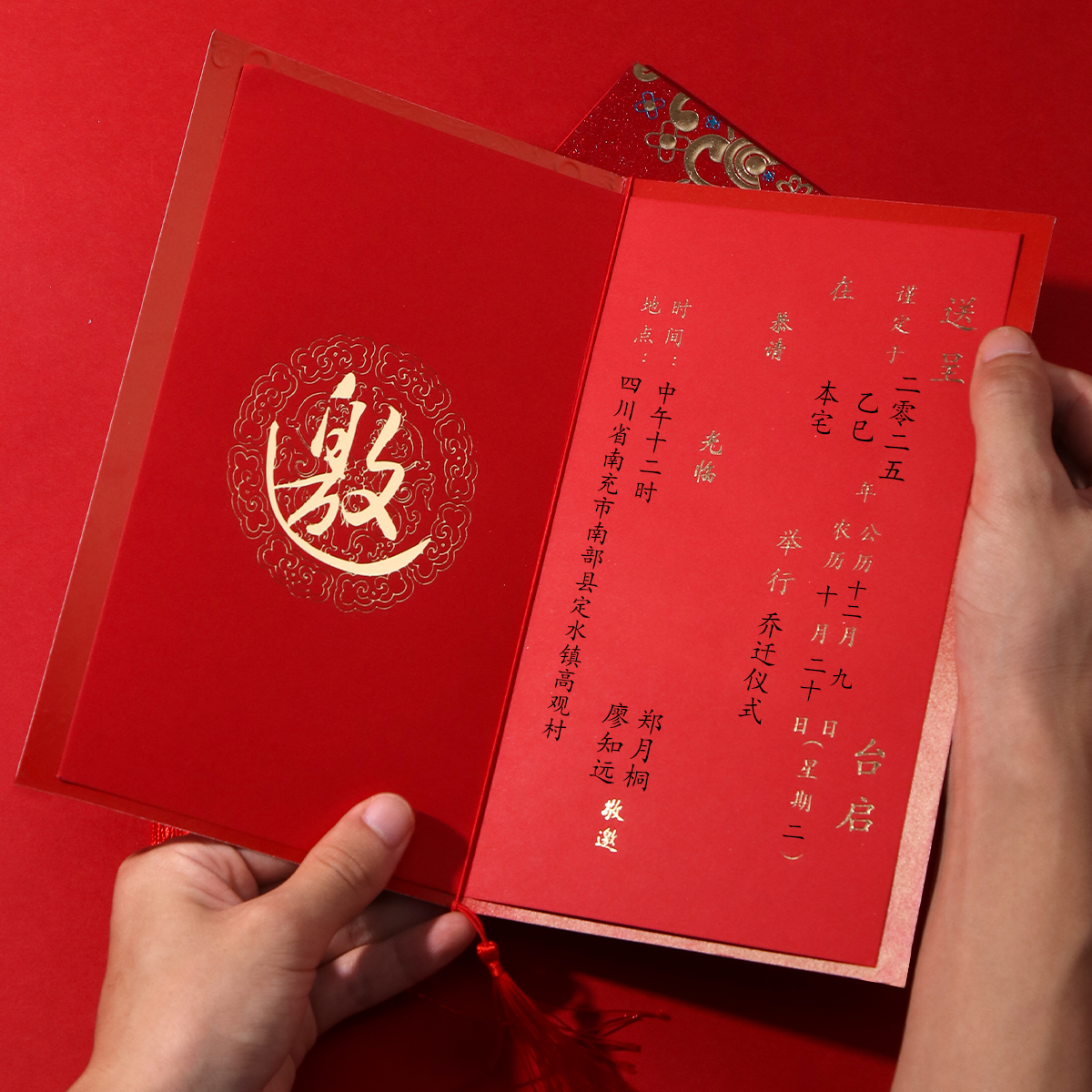 乔迁请柬2025新居落成请帖搬家创意喜帖进宅上梁高级感邀请函打印