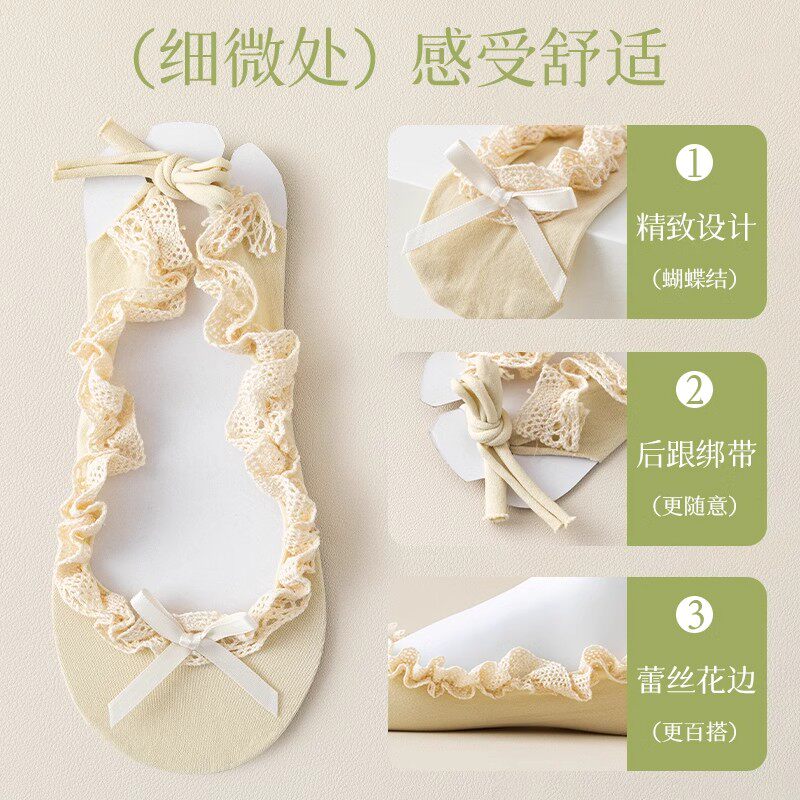 芭蕾舞风袜子女款夏季薄款花边船袜夏天蕾丝短袜配小皮鞋哇哒系袜