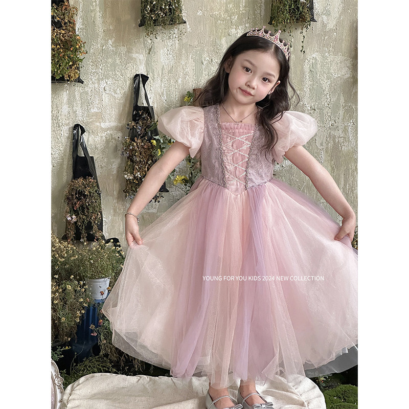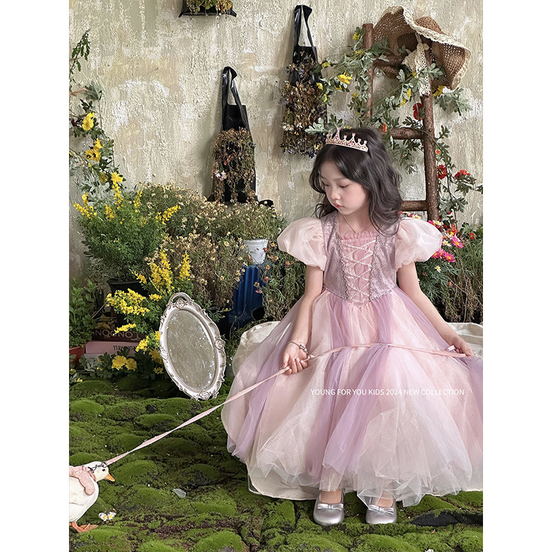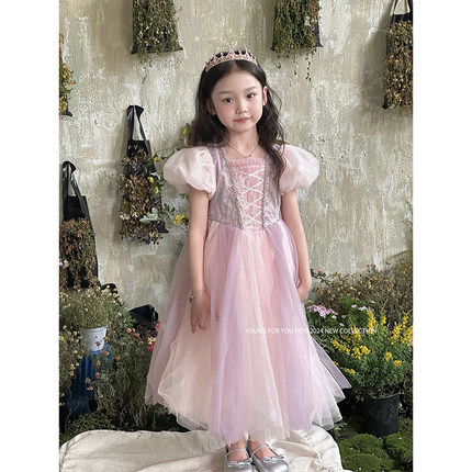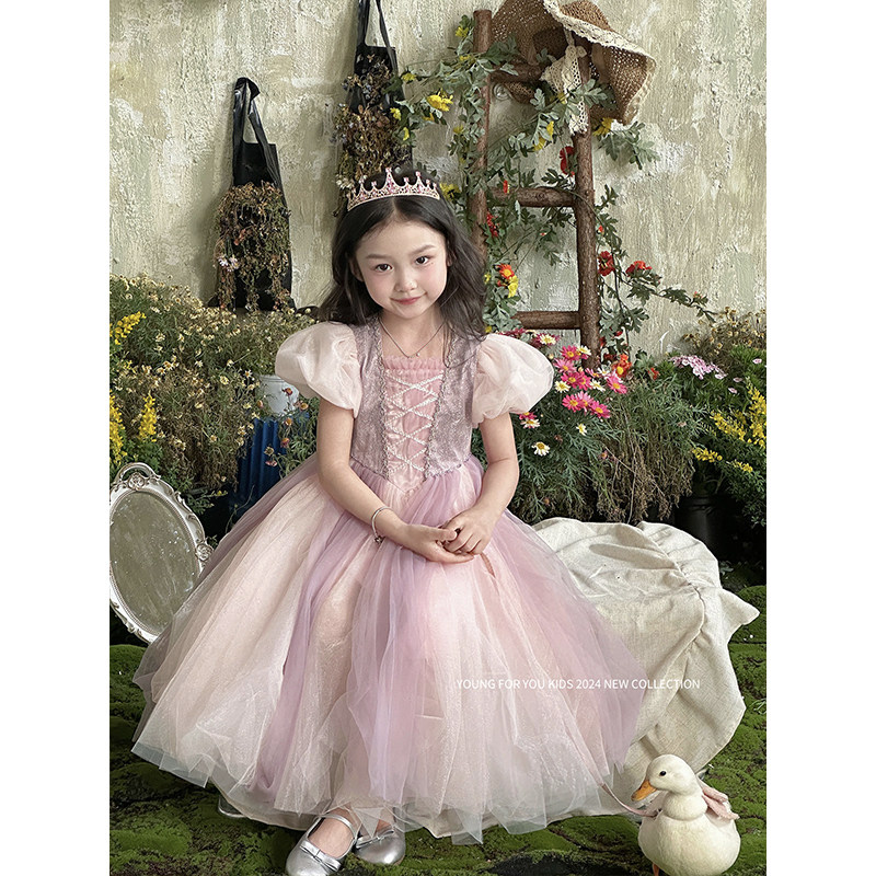 YFY春夏女童乐佩公主裙斗篷公主连衣裙生日礼服发光气质长裙重工