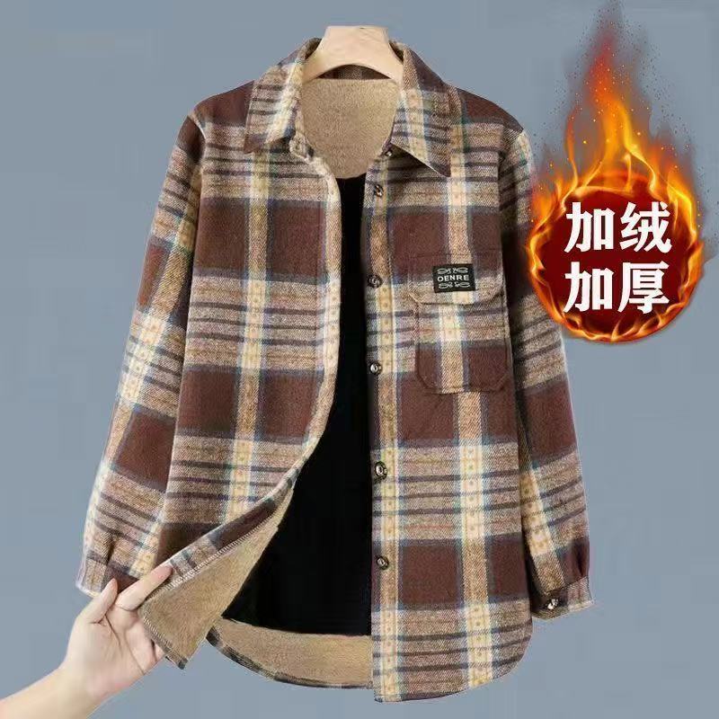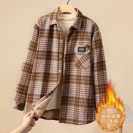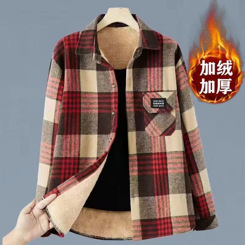 妈妈秋装格子长袖衬衫加绒加厚中老年女装春秋休闲小外套保暖衬衣
