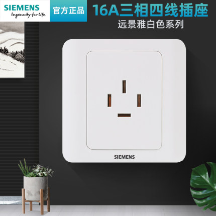 西门子三相四线开关插座面板 远景雅白86型16A空调电源家用 墙壁
