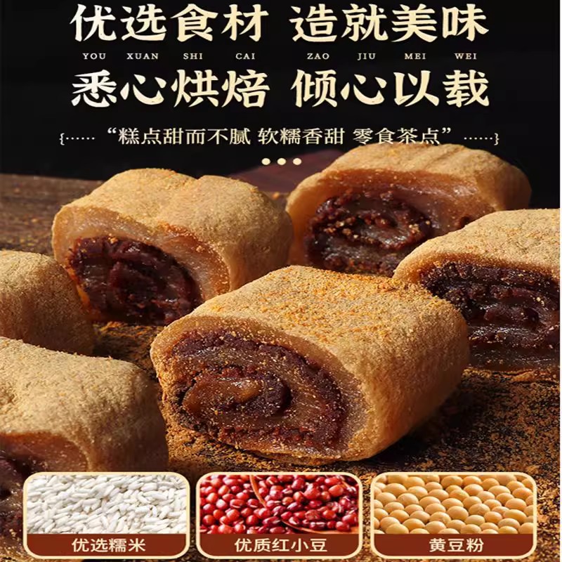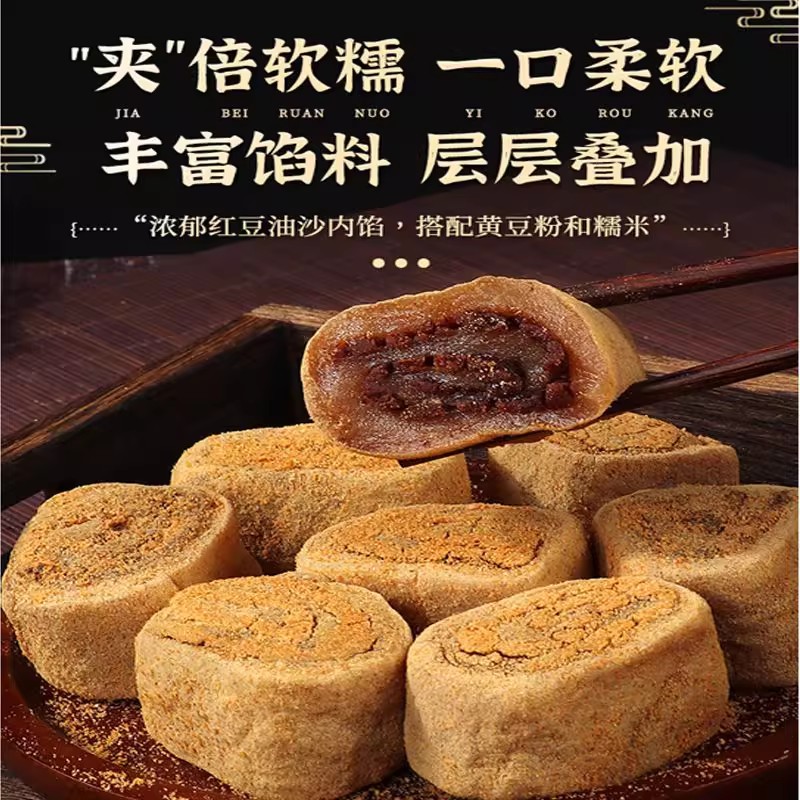 【糯叽叽】老式驴打滚红豆味黑芝麻馅东北特产卷糯米糍麻薯零食