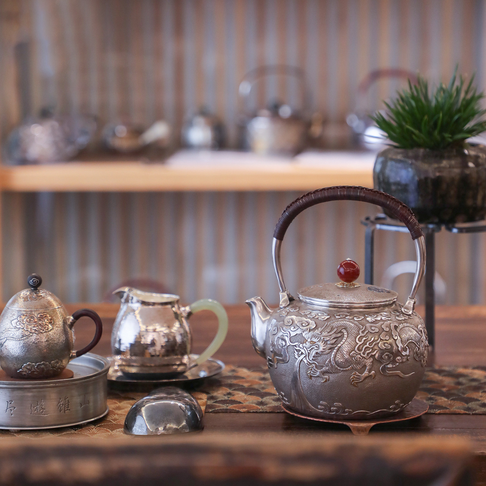 纯银时代錾刻龙凤呈祥足银烧水壶