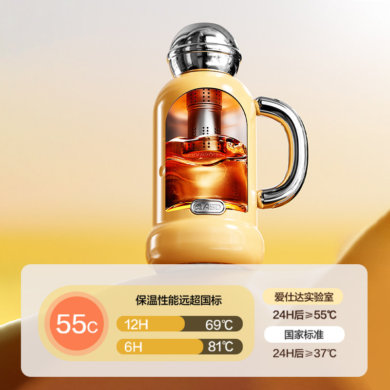 爱仕达保温杯女大容量316L不锈钢水壶办公室泡茶水杯高颜值芝士壶
