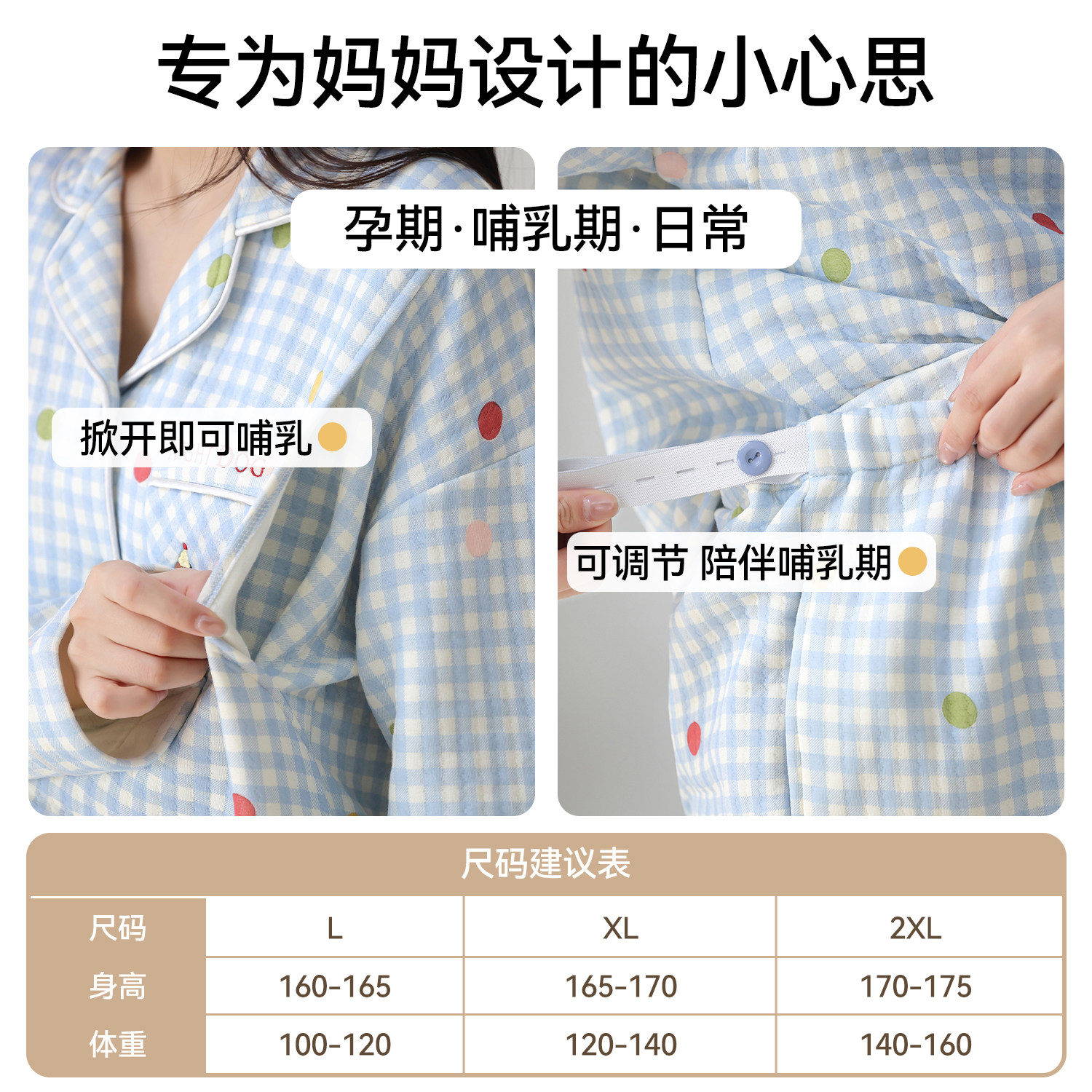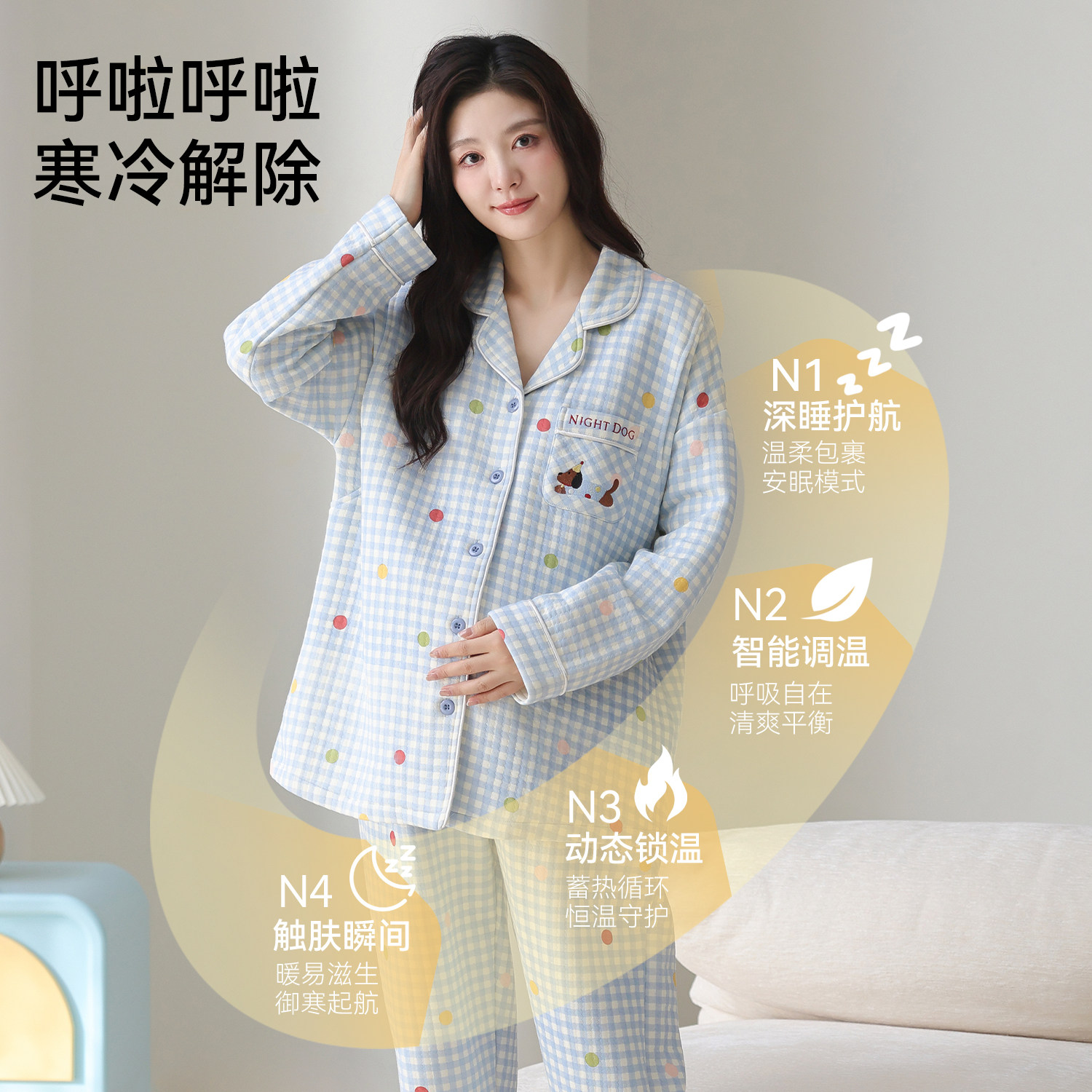 都市丽人纯棉月子服秋冬季保暖夹层空气棉孕妇哺乳产后睡衣家居服