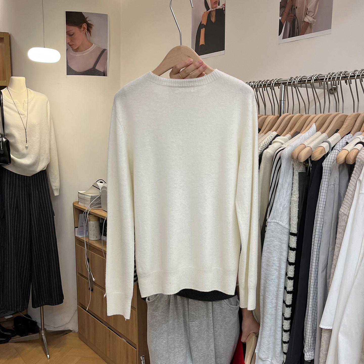 流行风格纯色百搭圆领长袖毛衣女