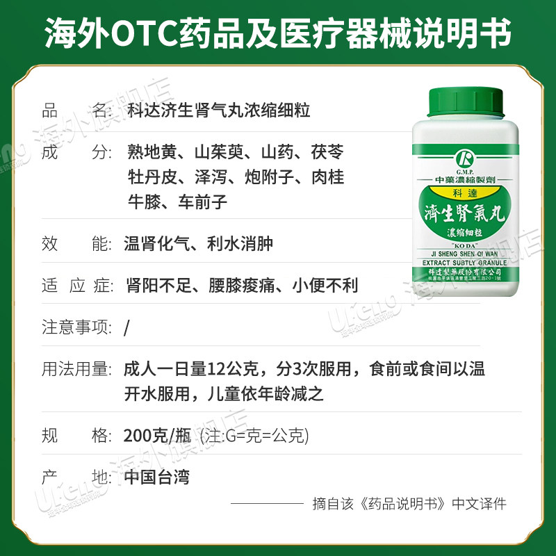 台湾科达制药济生肾气丸温肾化气利水消肿肾阳不足腰膝痛小便不利
