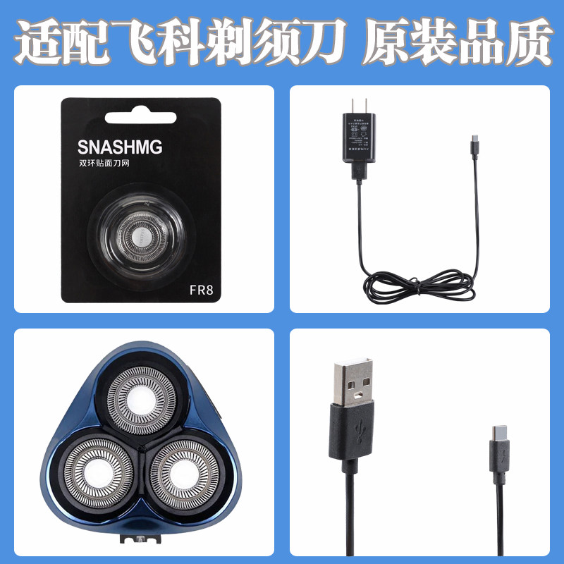 飞科电动剃须刀FS923刀头配件原装充电线刮胡刀片刀网头盖充电器