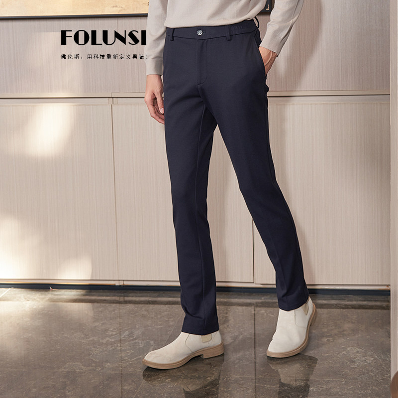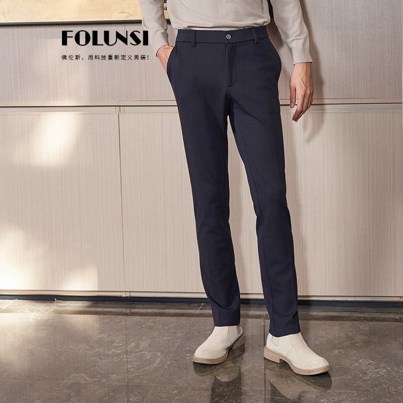 佛伦斯FOLUNSI男装裤子秋冬商务休闲裤男高端男士绵羊毛直筒裤