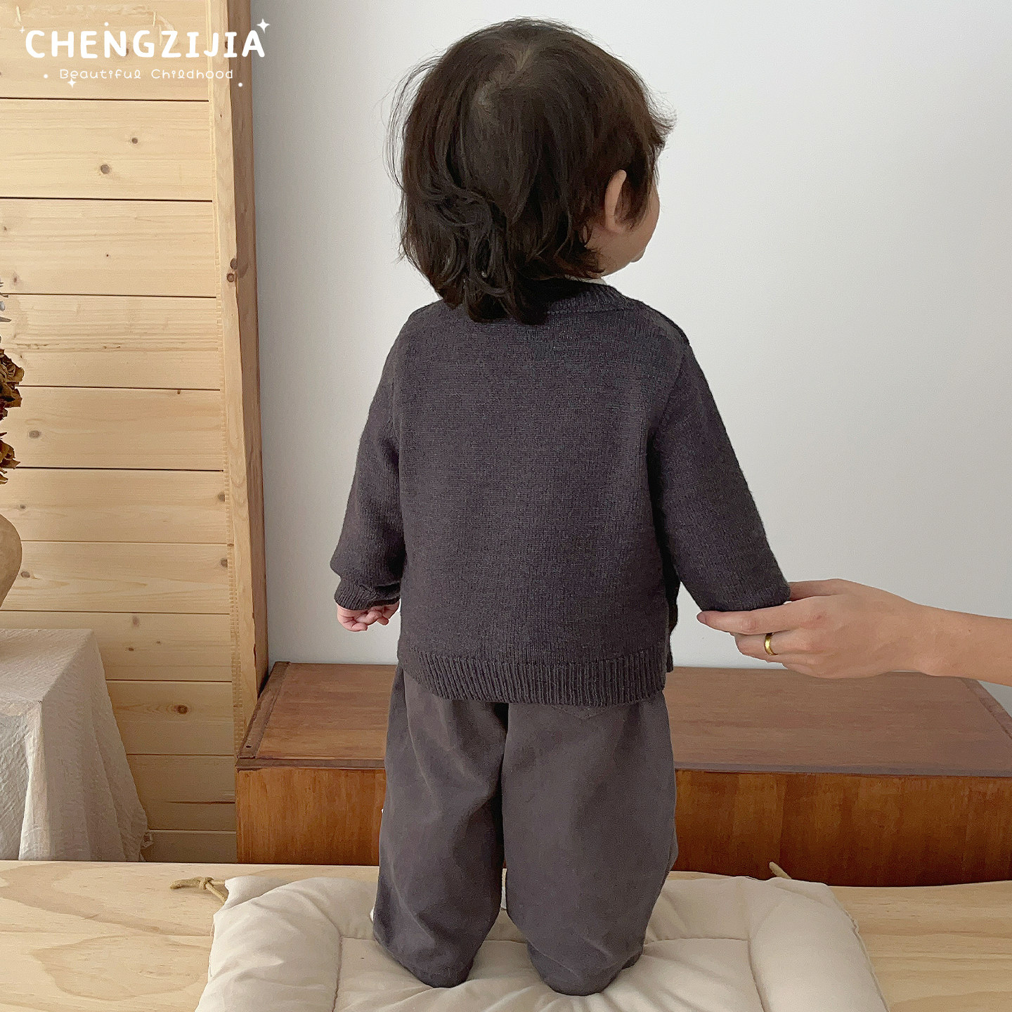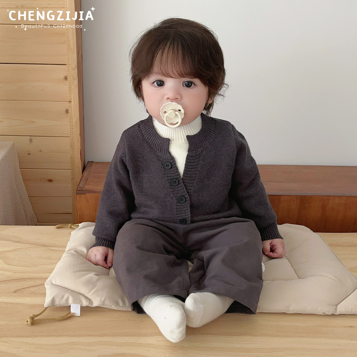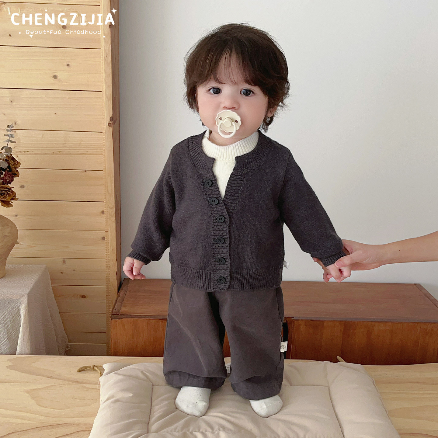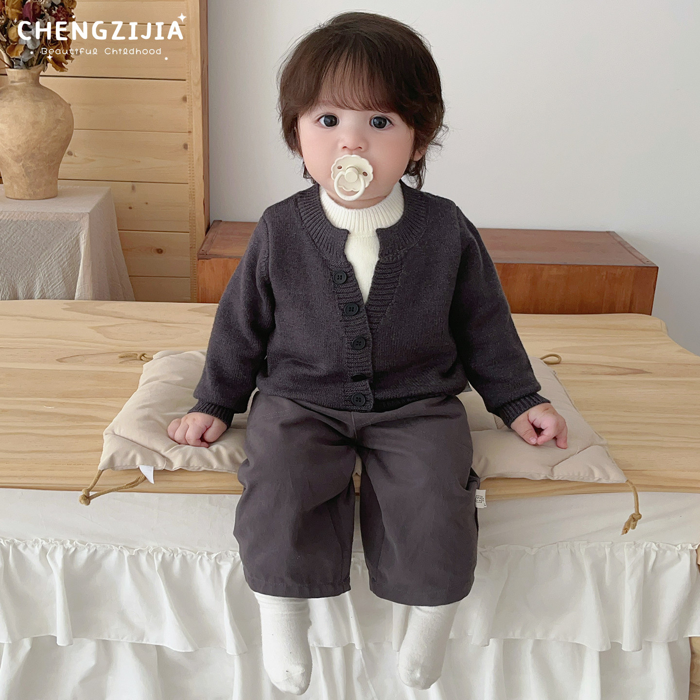 男宝宝冬装假两件毛衣套装男童韩版加厚保暖针织衫婴幼儿百搭裤子