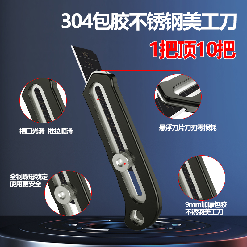 不锈钢包胶美工刀全钢加厚金属裁纸刀壁纸刀电工刀文具刀拆快递刀