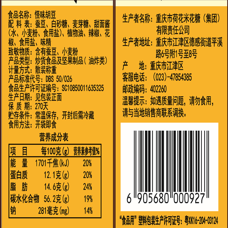 荷花牌重庆怪味胡豆500克麻辣蚕豆特产传统零食休闲小吃小包炒货