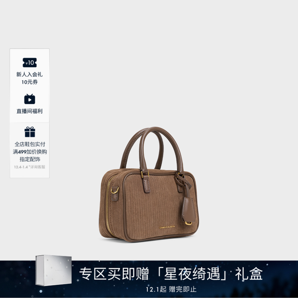 【圣诞礼物】CHARLES&KEITH女包CK2-30151589-1复古绒面波士顿包