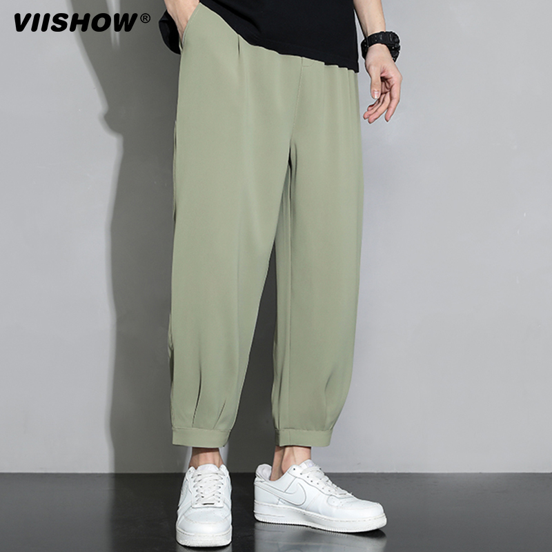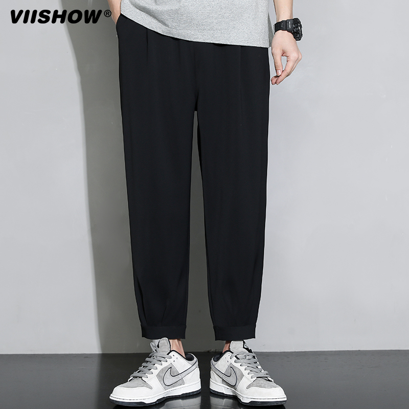VIISHOW夏季薄款冰丝裤男潮流束脚九分裤子宽松垂感西裤休闲长裤