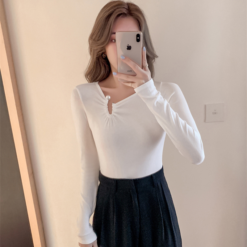 秋季百搭气质修身长袖打底针织衫上衣洋气别致独特内搭毛衣女秋冬