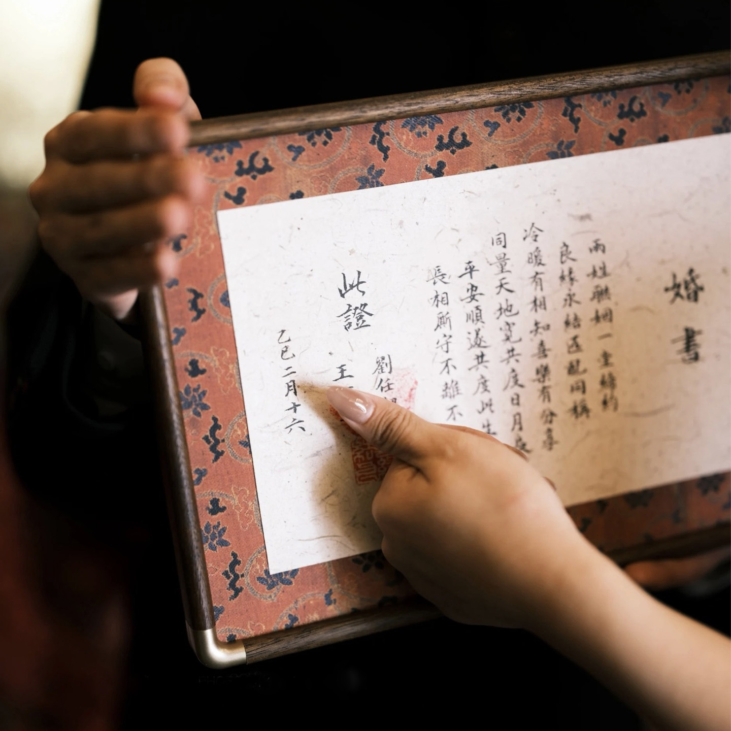 松泉手写书法定制结婚礼物相框中式婚书空白画框自写订婚书材料包