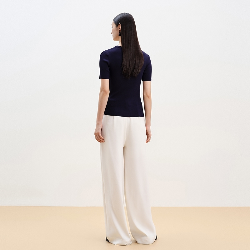 【商场同款】AUM噢姆夏季藏青色休闲圆领修身短袖针织衫上衣女款