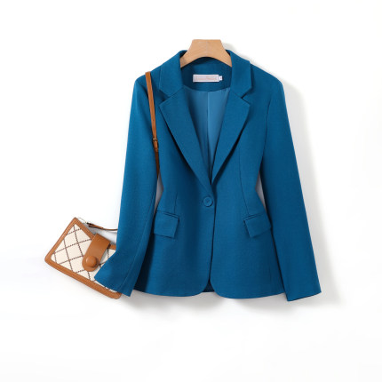 高级感蓝色西装外套女春秋时尚气质女士小个子孔雀蓝职业西服
