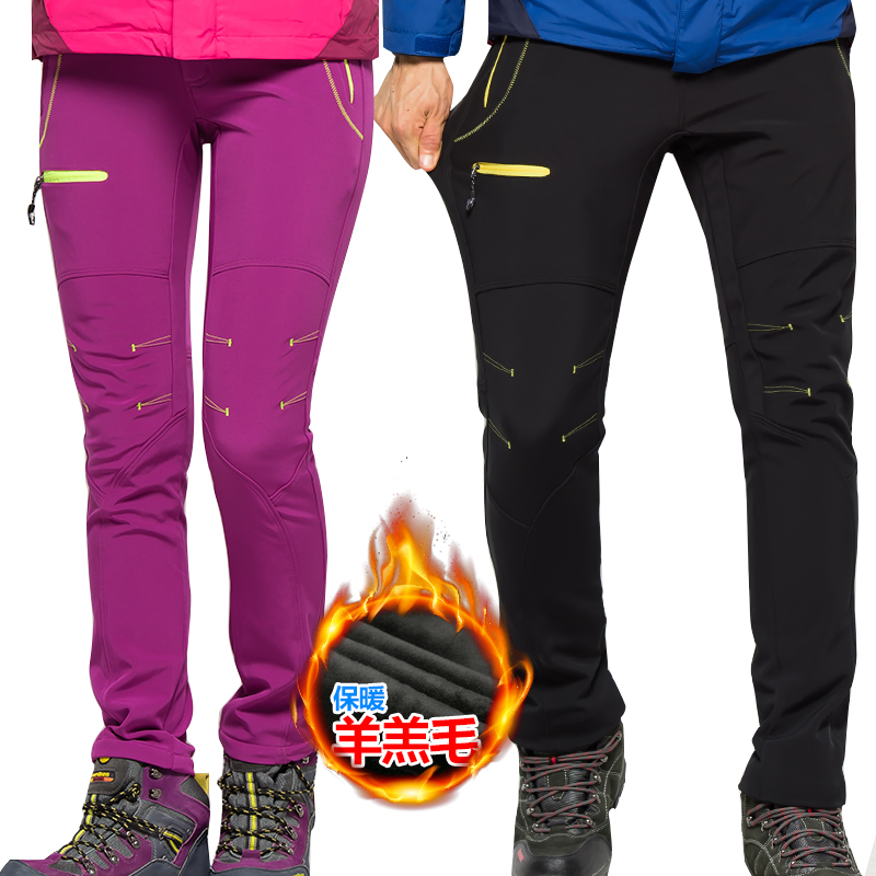 冬季冲锋裤男女弹力防风防水加绒加厚滑雪裤登山裤大码户外软壳裤