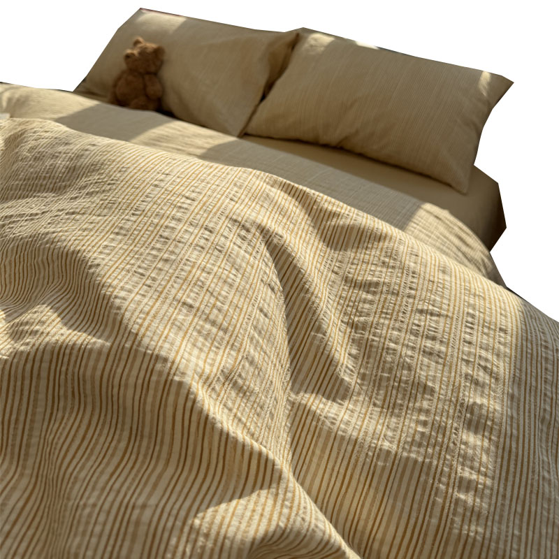 ins水洗棉复古提花条纹黄床上四件套全棉1.5m1.8米公寓被套三件套