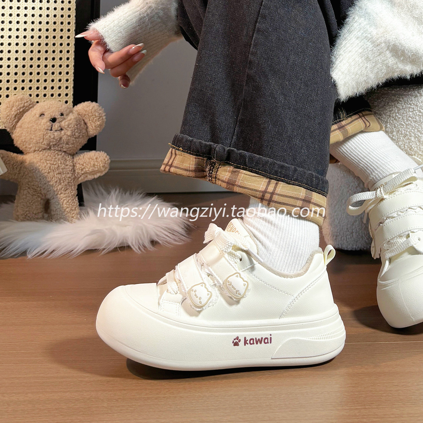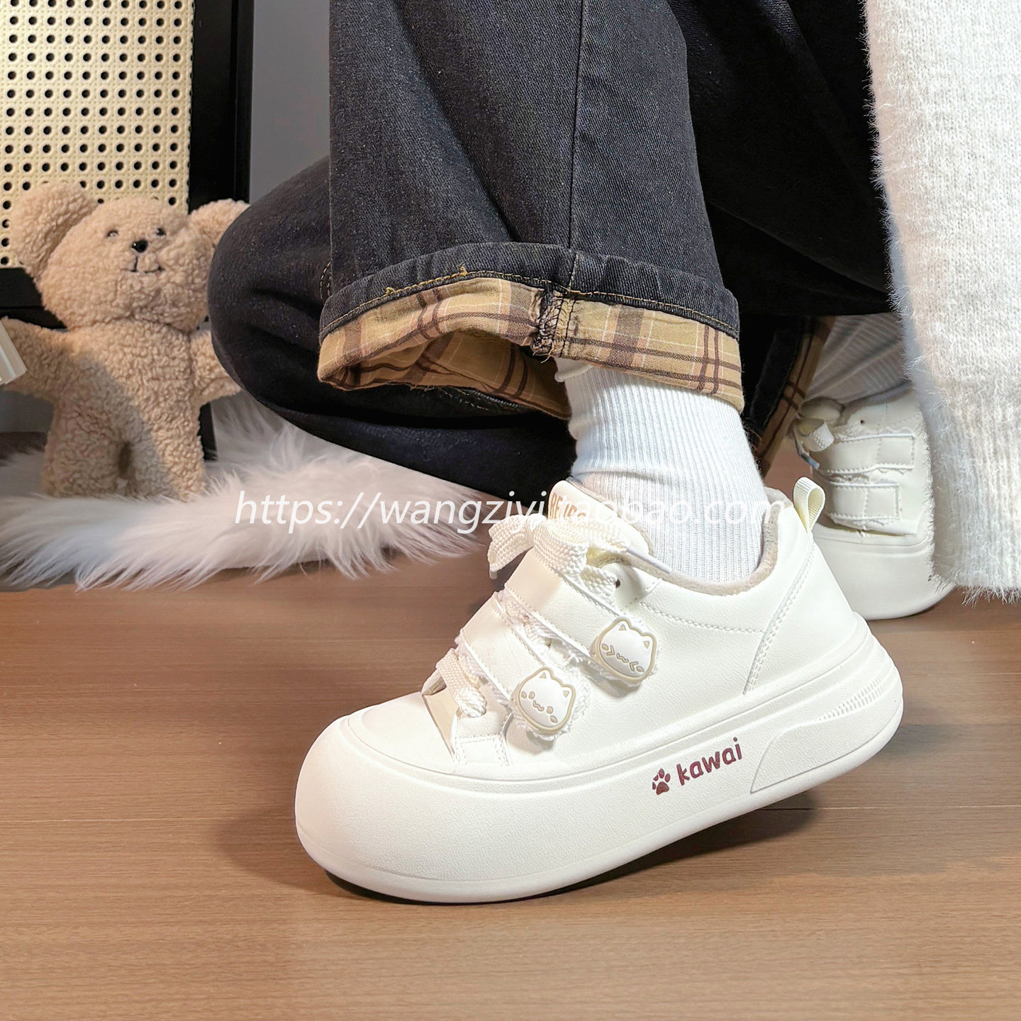 人本加绒大头面包鞋女厚底保暖可爱小白鞋冬季爆款软底轻便板鞋子