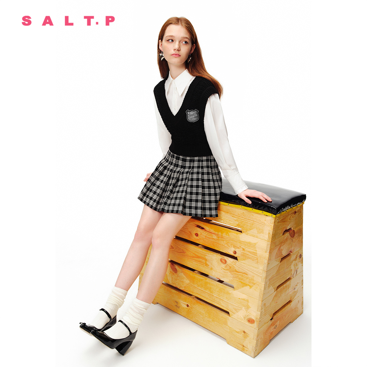 SALT.P可颜2024春夏学院黑白格纹羊毛百褶裙短裙半身裙