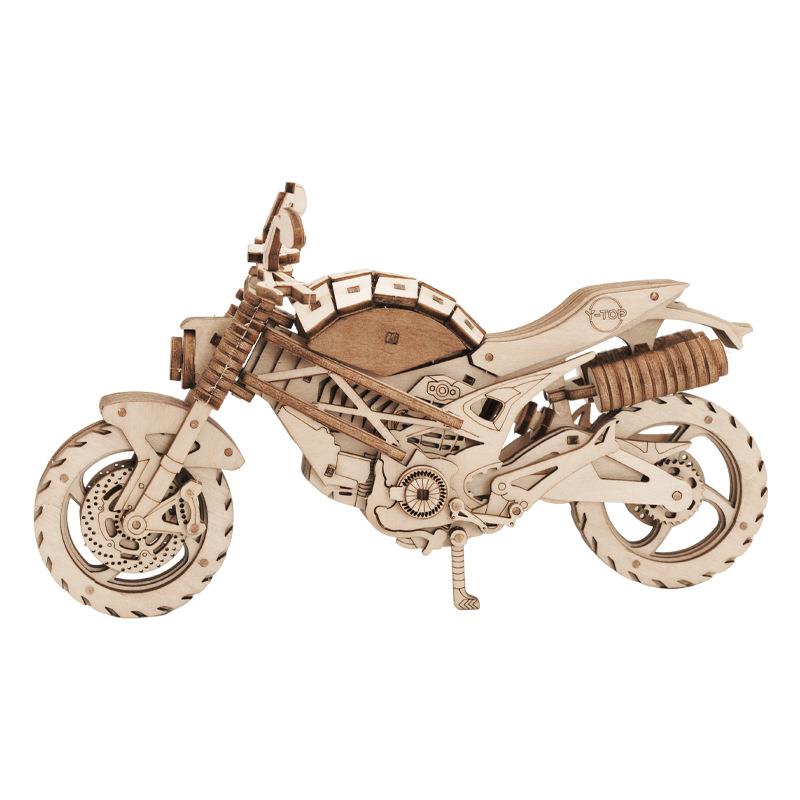 越野机车手工拼装模型益智玩具孩礼物木质拼图摩托车手摆件