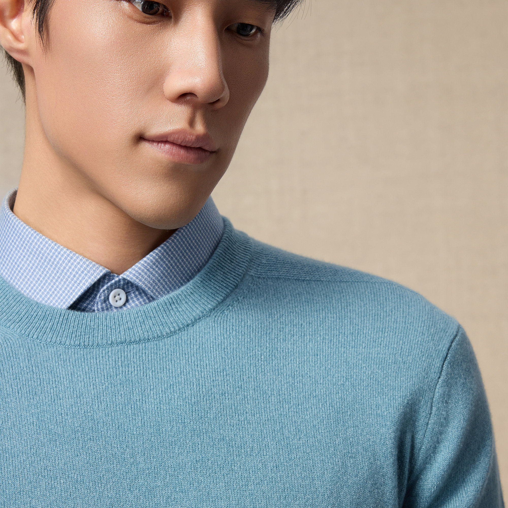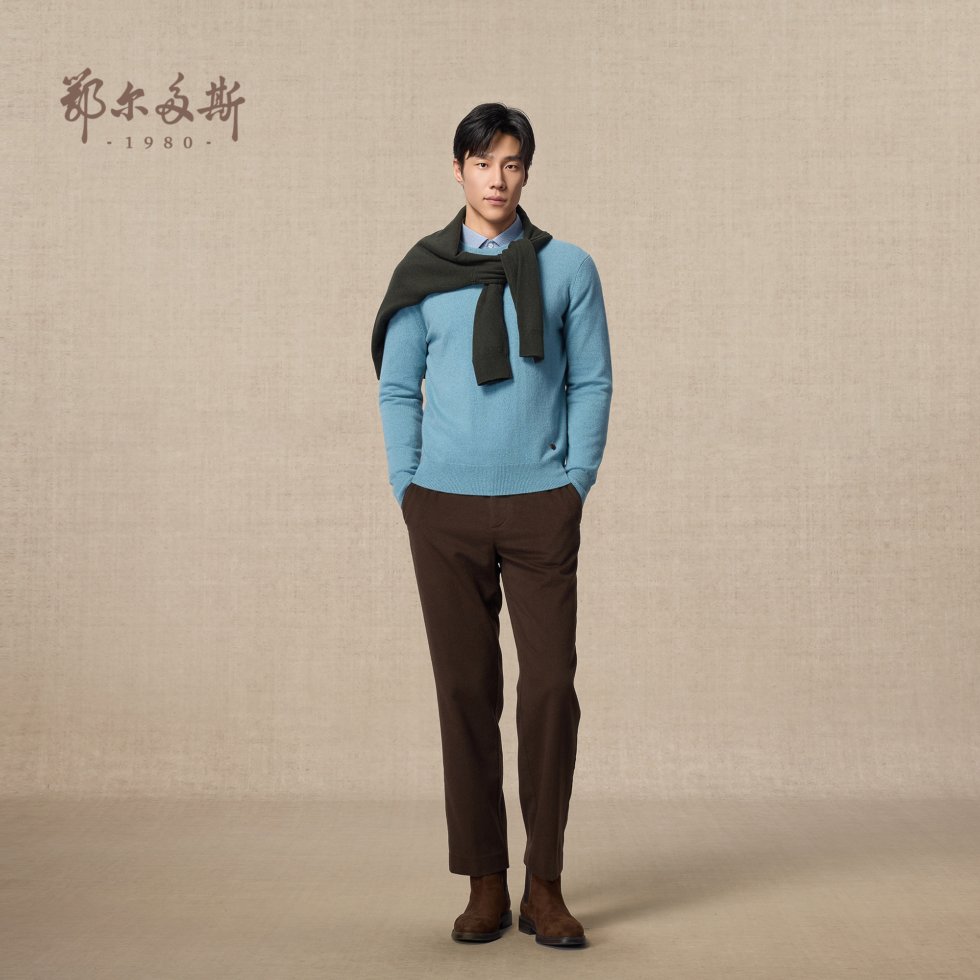 鄂尔多斯1980 男装圆领纯色羊绒衫25年秋冬新品保暖直身版针织衫