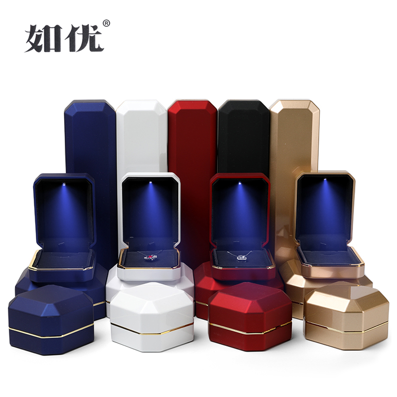 高档戒指盒带灯珠宝礼品盒首饰包装盒手饰项链盒子吊坠手镯收纳盒