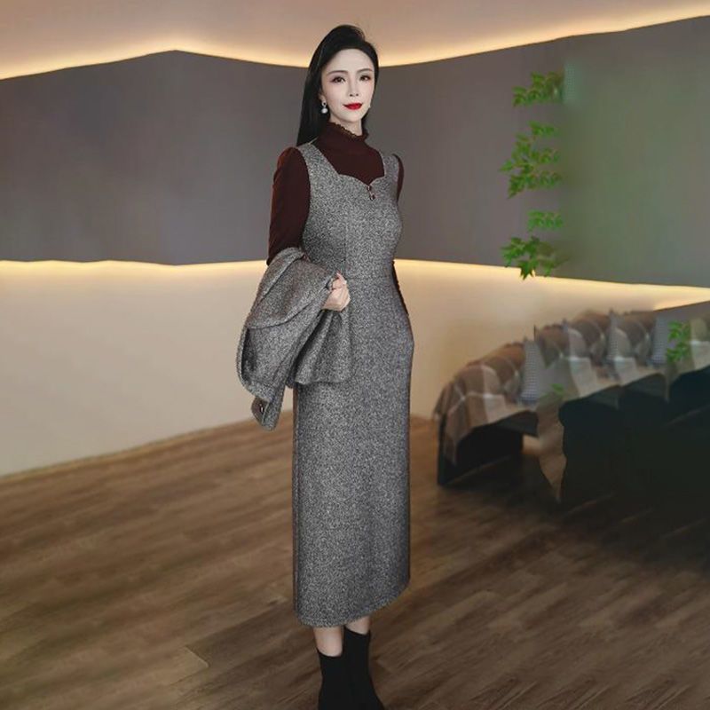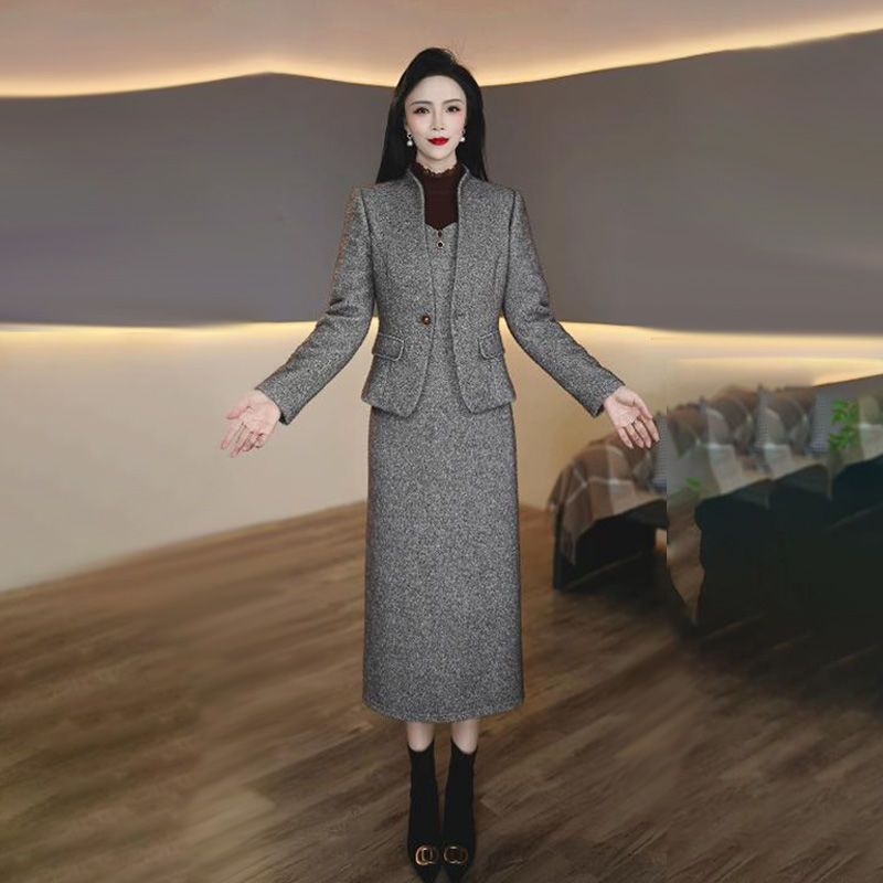 气质高档两件套连衣裙女装2024秋冬新款洋气时尚显瘦西服套装裙子
