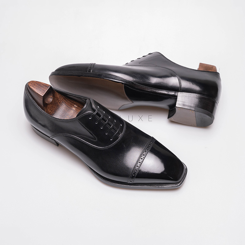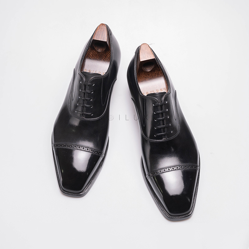 意大利Antonio Meccariello手工固特异牛津皮鞋男 黑色商务三接头