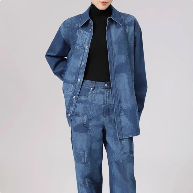 哥弟清仓2025春秋季新款休闲宽松翻领拼接印花牛仔衬衫外套女
