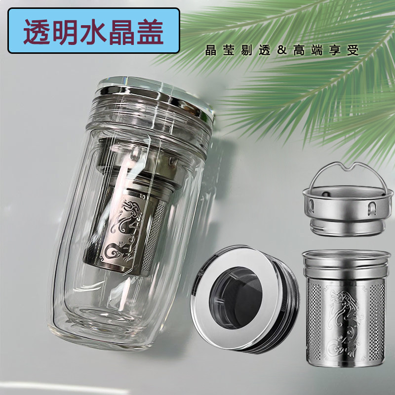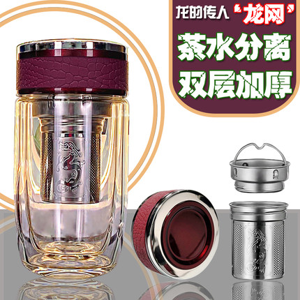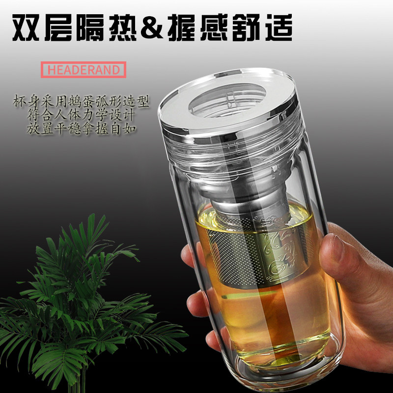 双层玻璃杯加厚隔热鹅蛋茶水分离泡茶杯男女车载个人专用喝水杯子