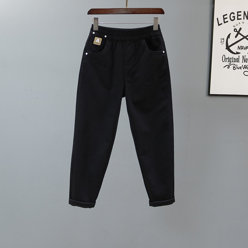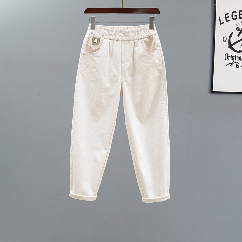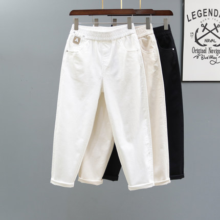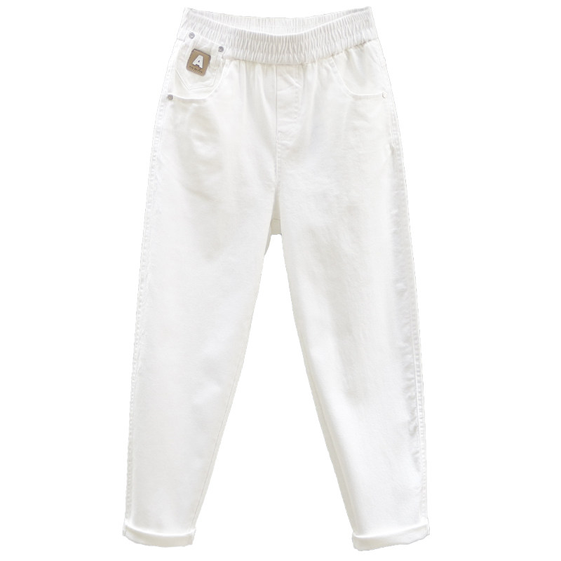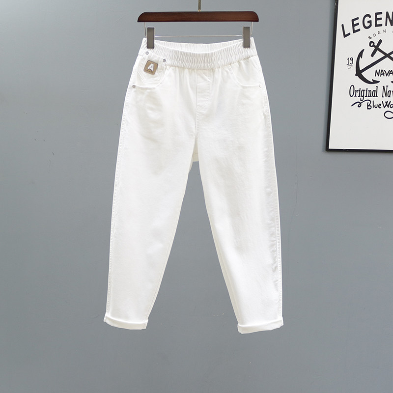 松紧腰白色休闲哈伦裤女士2026春夏新款宽松牛仔裤百搭显瘦萝卜裤