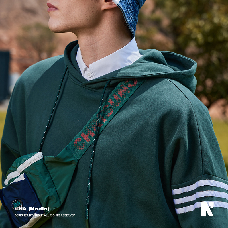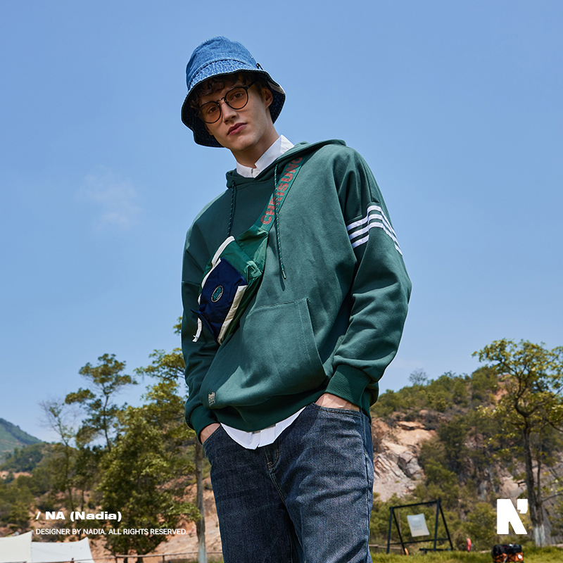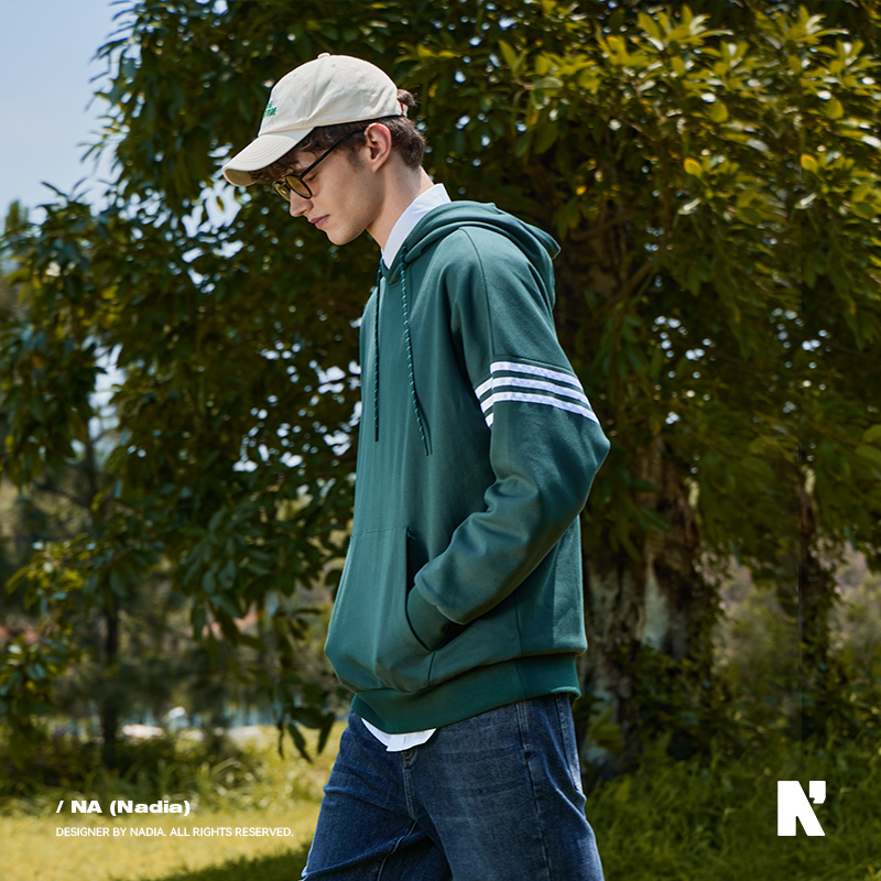 N+a纳迪亚纳迪亚2023秋季男女同款休闲连帽三道杠卫衣
