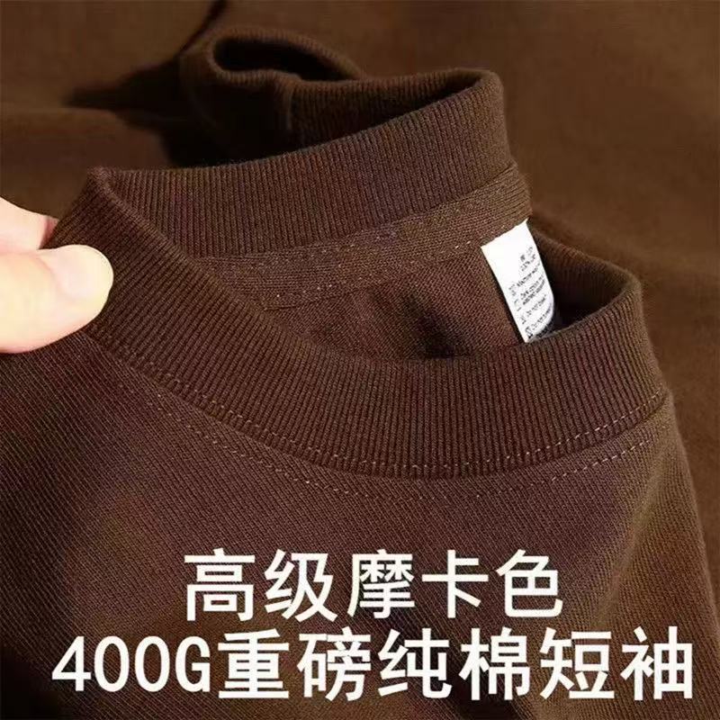 400g重磅显白深灰色新疆精梳棉短袖t恤宽松纯色男女简约纯棉上衣