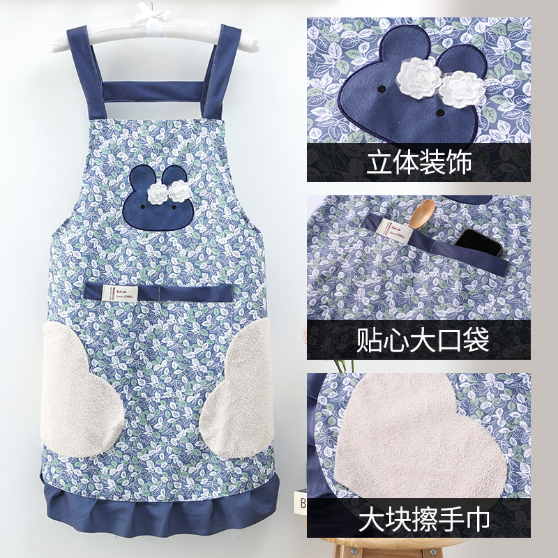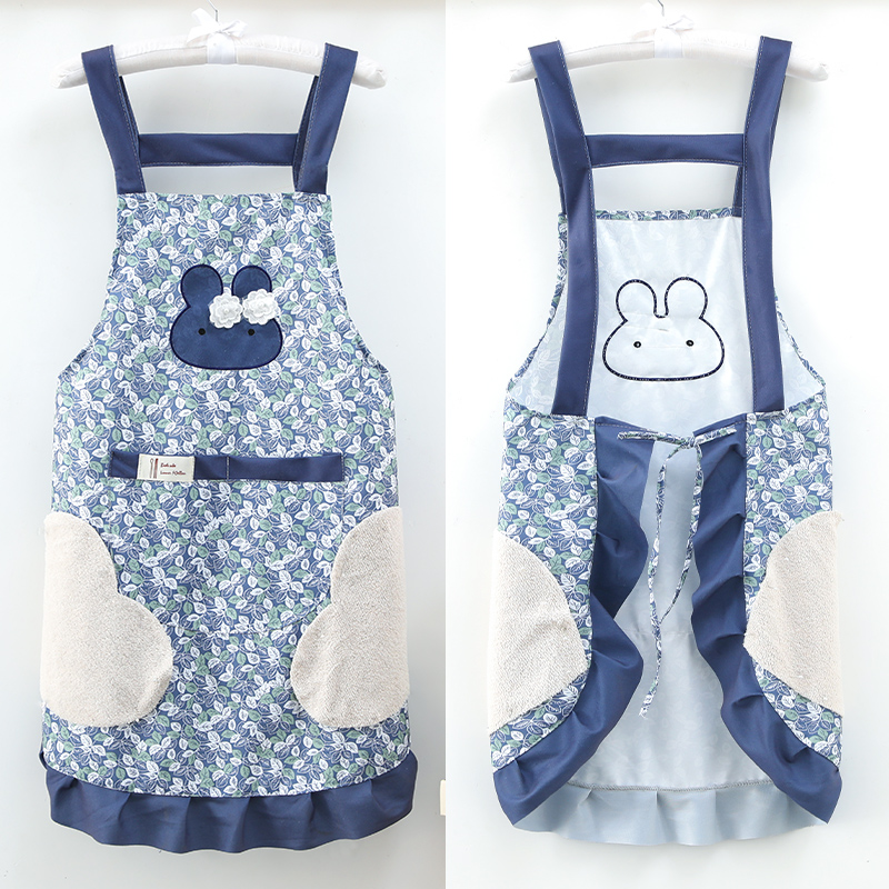 成人新款时尚韩版背带擦手防水围裙可爱围腰女工作服洋气厨房家用