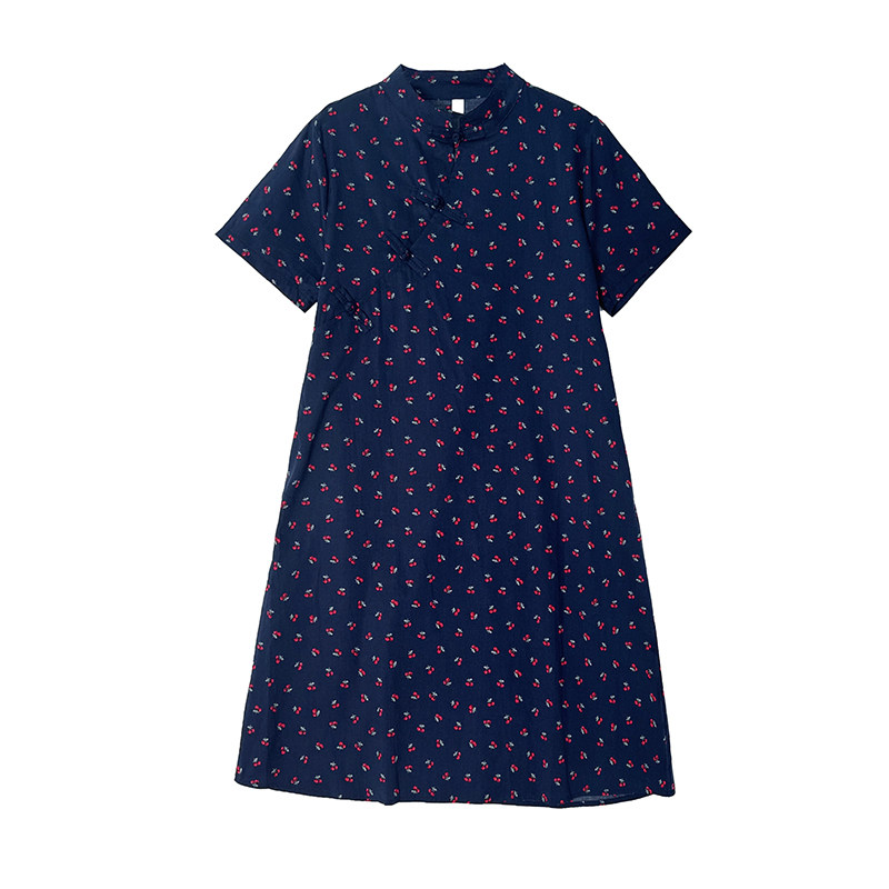 复古中式改良旗袍裙折扣夏季纯棉印花文艺宽松连衣裙斜襟盘扣裙子