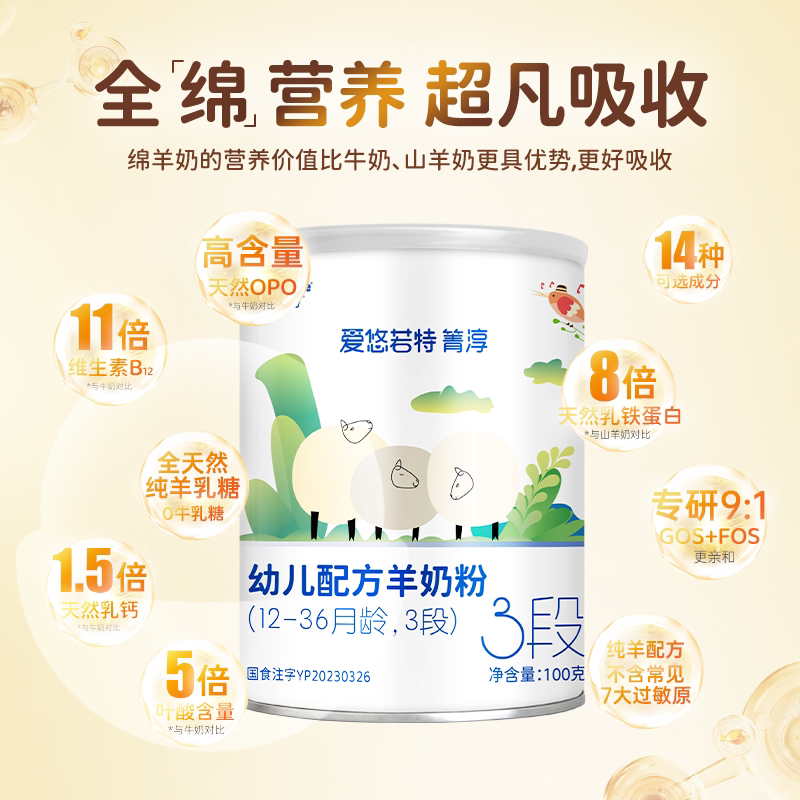 老唐育儿爱悠若特箐淳3段三段纯羊奶粉3段幼儿配方奶粉